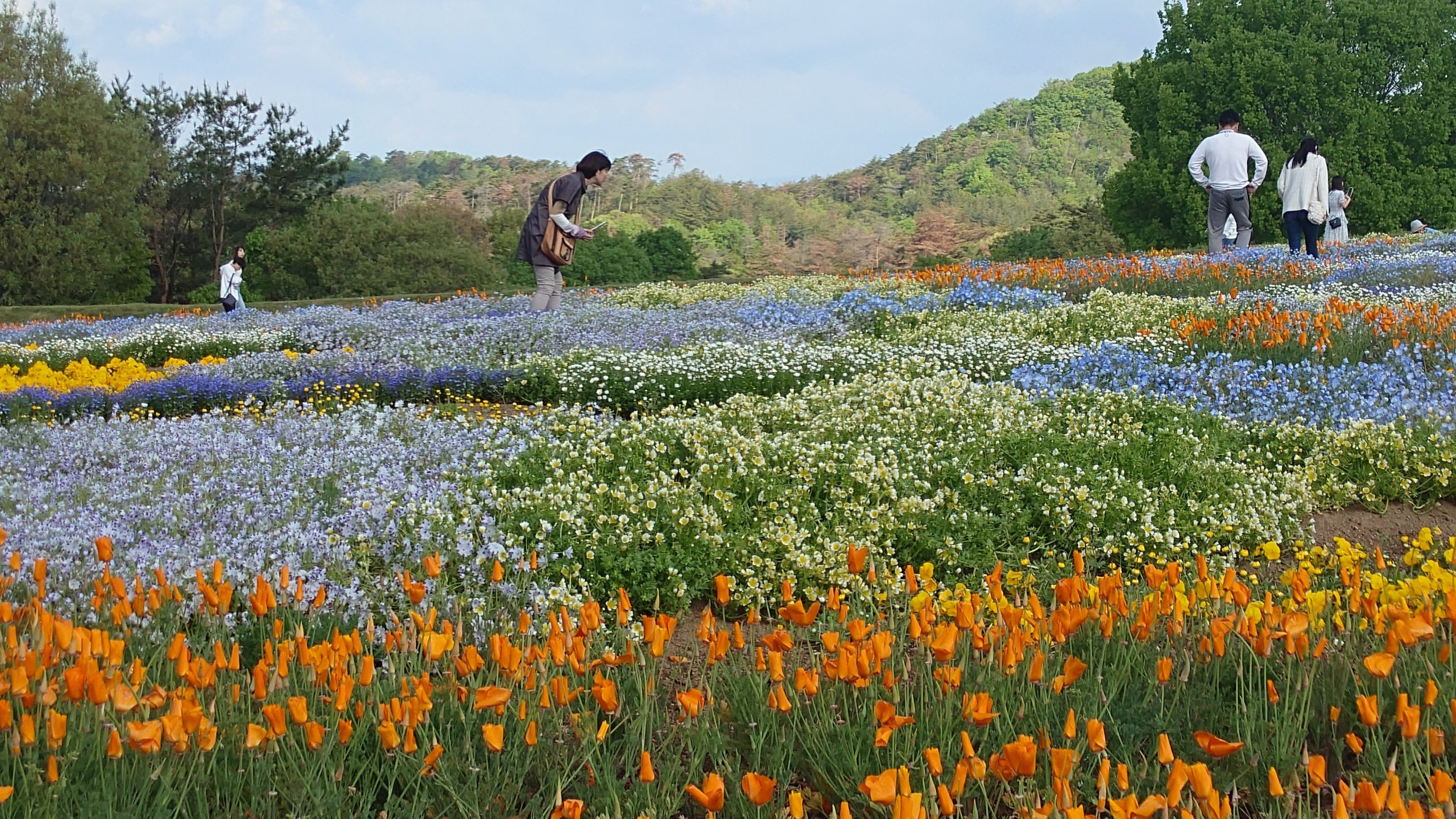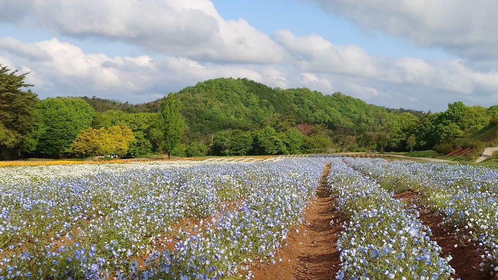 園内のネモフィラは見頃後半です。もうしばらく青い風景を楽しめそうです。