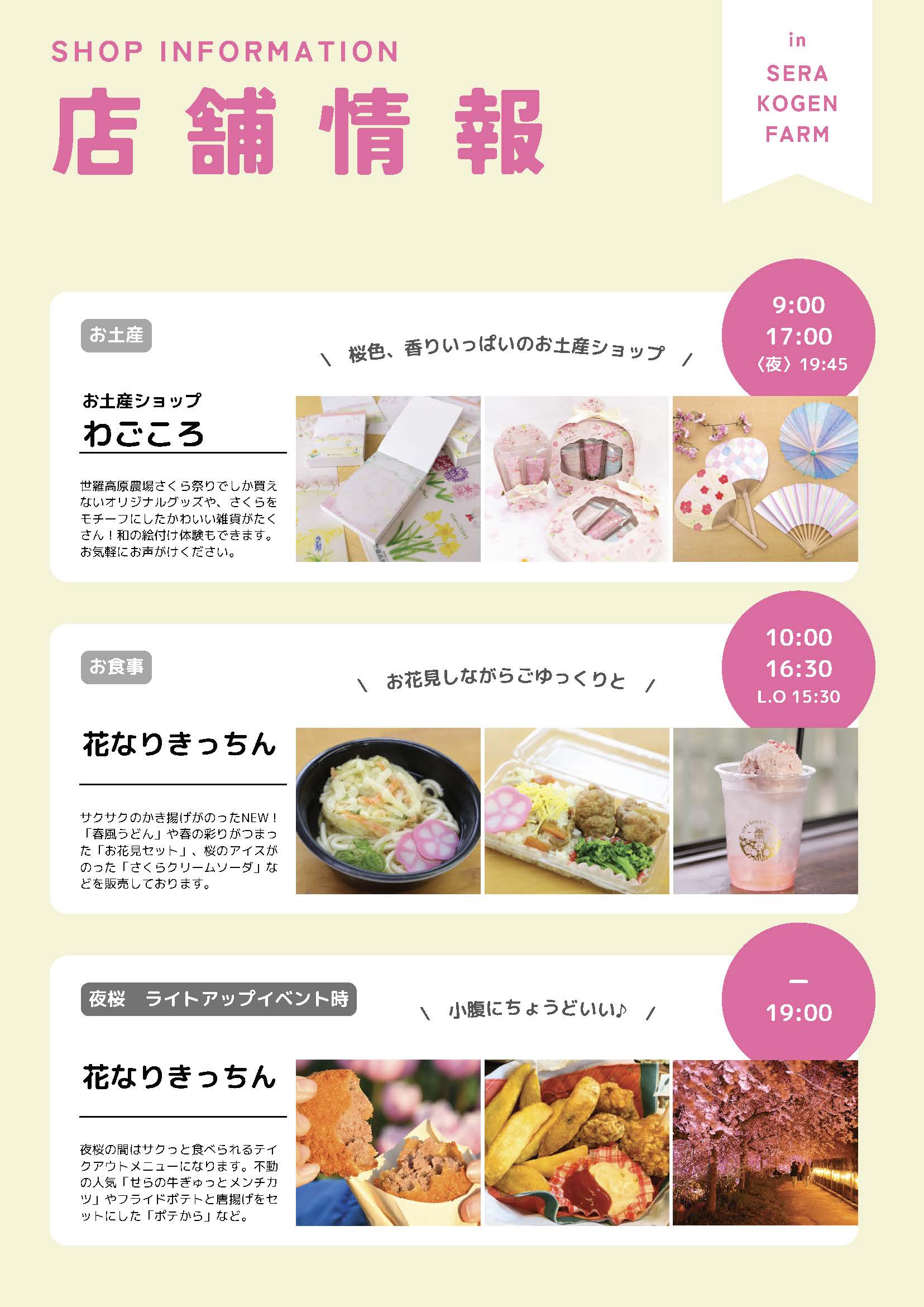 園内にはお食事処やお土産ショップなどもありますので